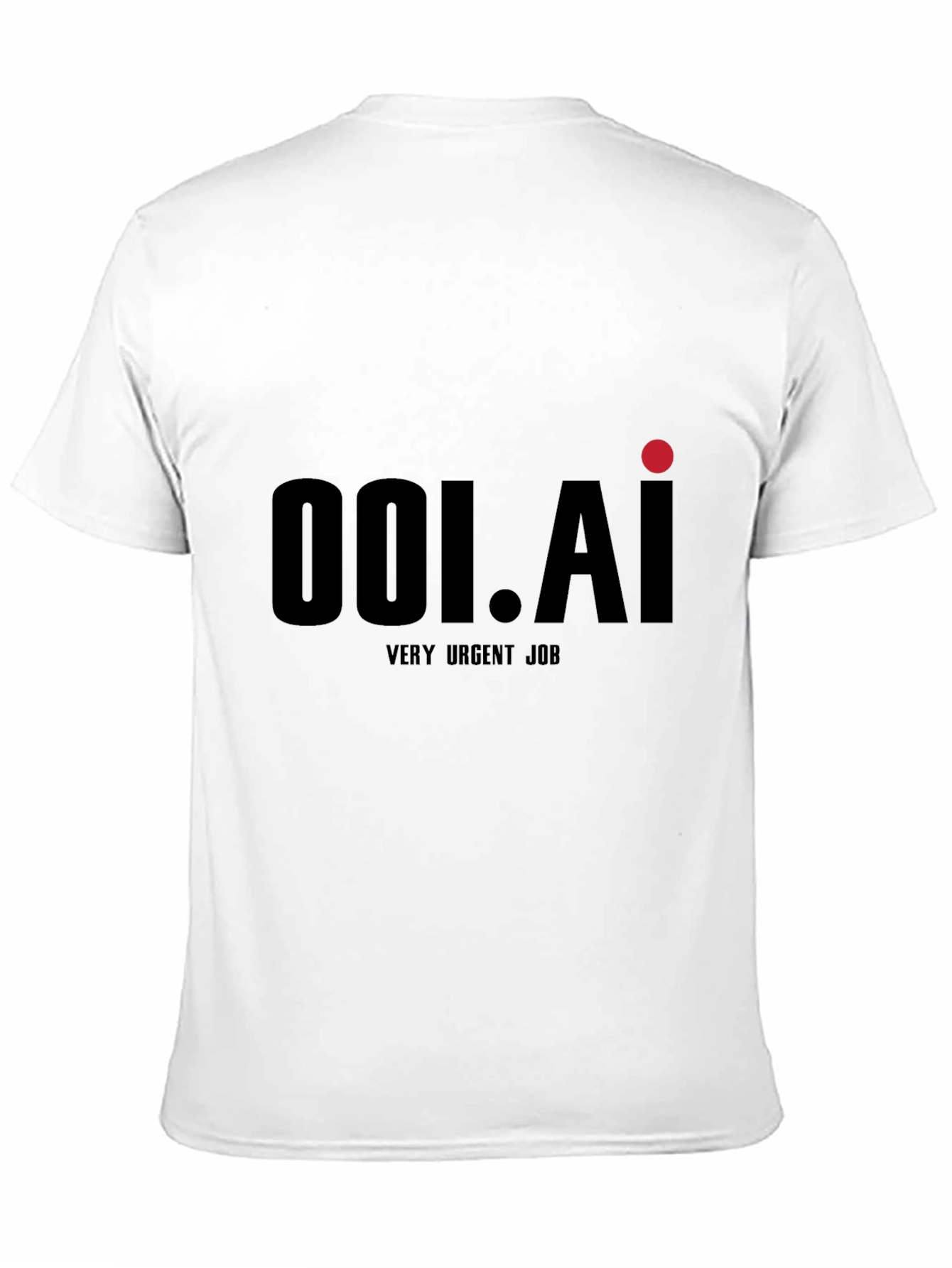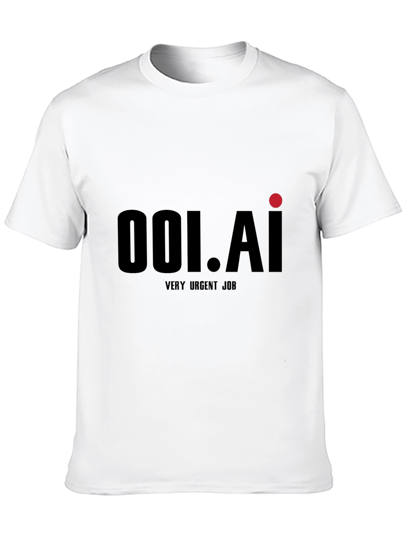 This stylish black t-shirt features a bold "001.AI" graphic design on the front, accented with a vibrant red dot. Below the primary design, the words "VERY URGENT JOB" are printed, adding a unique and playful twist. The shirt appears to be made of a comfortable, soft fabric, likely cotton or a cotton blend, perfect for everyday wear. Its classic fit makes it suitable for various casual occasions. Ideal for those who appreciate modern graphics and a touch of humor in their wardrobe. Makes a statement while staying effortlessly cool.