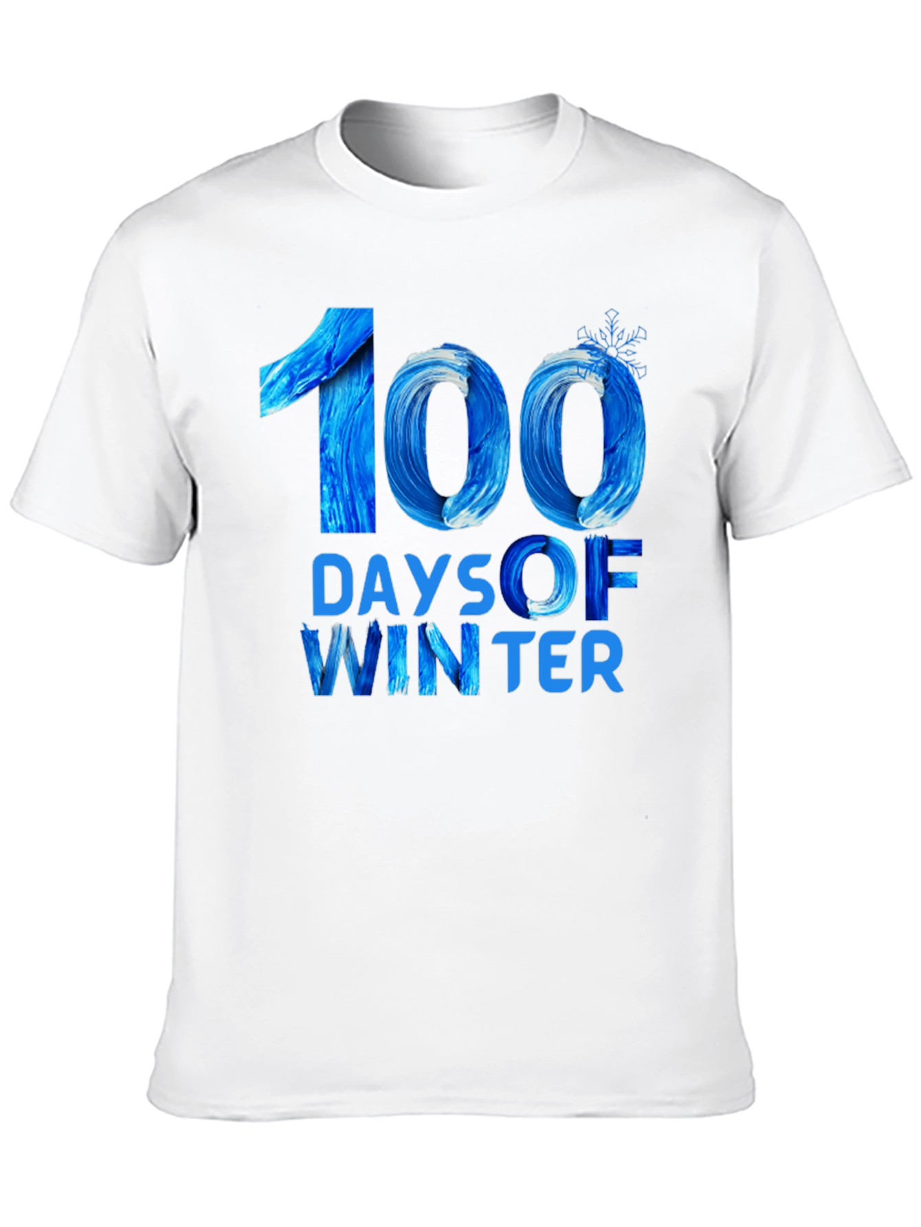Embrace the winter season with this stylish black t-shirt. The shirt features a striking design that reads "100 Days of Winter" in bold, vibrant blue lettering with a paint stroke effect. A small snowflake adds a touch of winter charm. Made from a comfortable-looking fabric, this shirt is perfect for casual wear during the colder months. Show off your love for winter and make a statement with this eye-catching tee. Ideal for everyday use, winter outings, or as a thoughtful gift for the winter enthusiast in your life.