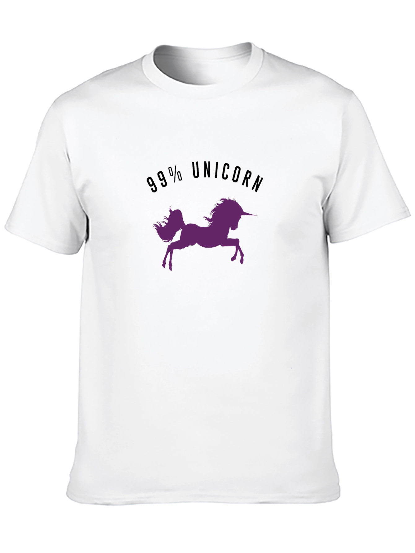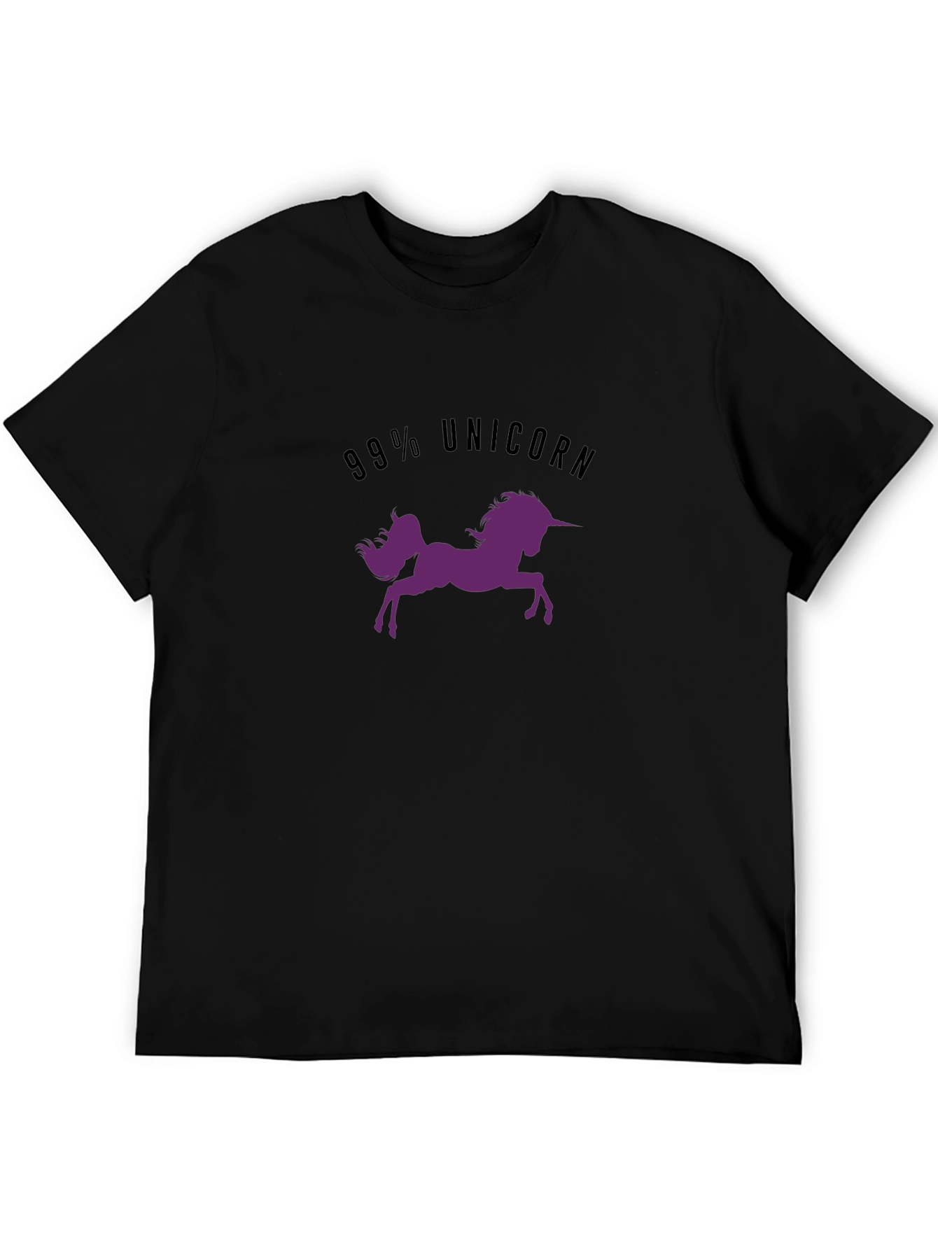 Show off your whimsical side with this eye-catching black t-shirt. The design features a fun "99% Unicorn" graphic with a majestic unicorn silhouette in a vibrant shade of purple. Made from a soft, comfortable fabric, this tee is perfect for casual wear. Its classic fit ensures a relaxed and flattering look. Ideal for everyday wear, casual outings, or as a playful statement piece. Add a touch of magic to your wardrobe with this unique and comfortable graphic t-shirt!