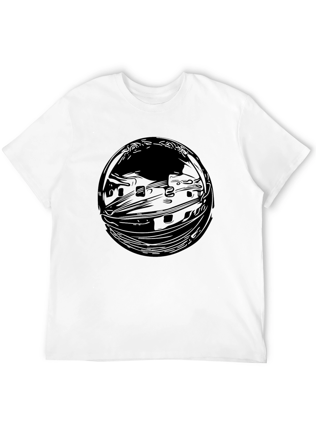 This stylish men's t-shirt features a unique abstract design in black, printed on a classic crew neck tee. The dark, eye-catching graphic adds an artistic edge to your casual wardrobe. Made from comfortable fabric, this tee is perfect for everyday wear, whether you're hanging out with friends or running errands. The modern design and versatile color make it easy to pair with jeans, shorts, or chinos. Elevate your casual style with this statement-making graphic tee.