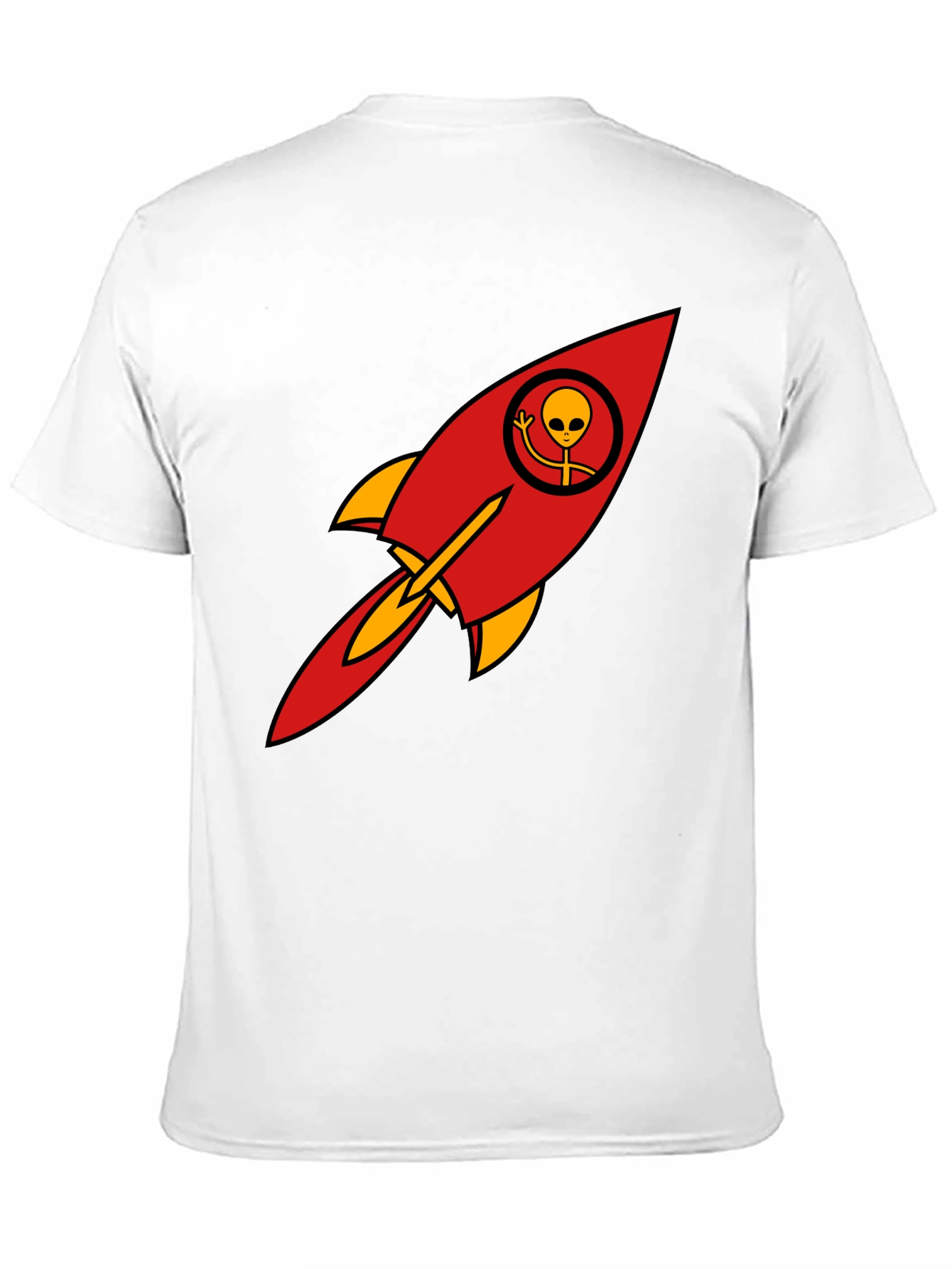 Blast off in style with this cool black t-shirt featuring a bold graphic of a red rocket ship with an alien waving hello from inside! Made from a comfortable cotton blend, this tee is perfect for casual wear. The vibrant colors of the rocket design stand out against the black background, making it a fun and eye-catching addition to any wardrobe. Ideal for space enthusiasts, sci-fi fans, or anyone who loves unique and playful clothing. Wear it to concerts, casual hangouts, or just lounging at home – guaranteed to start conversations!
