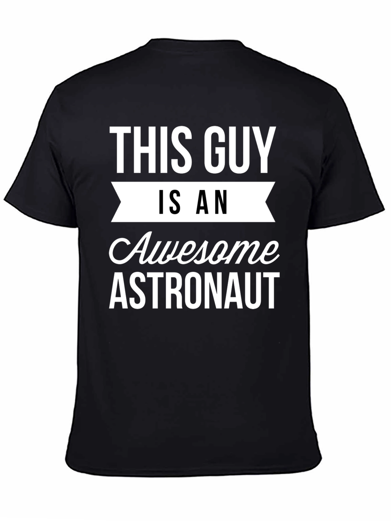 This black t-shirt proudly proclaims "This Guy is an Awesome Astronaut" in bold, white lettering. The design is eye-catching and humorous. Made from a comfortable-looking material, this tee is perfect for casual wear, space enthusiasts, or anyone who wants to show off their out-of-this-world personality. Whether you're headed to a sci-fi convention, lounging at home, or exploring new galaxies (in your imagination, of course!), this t-shirt is sure to make a statement. Makes a great gift for the astronaut in your life or a fun way to express your passion for space exploration.