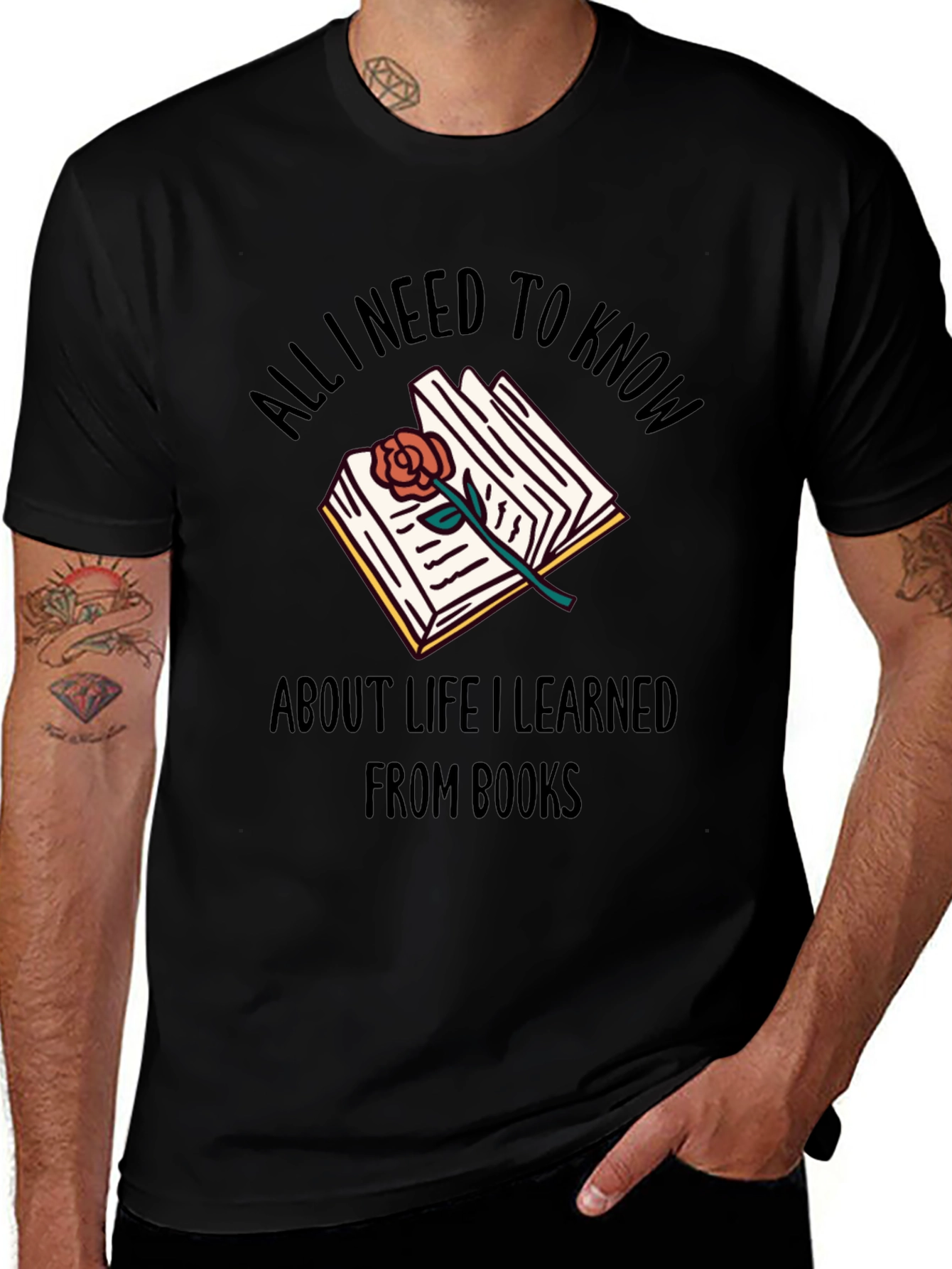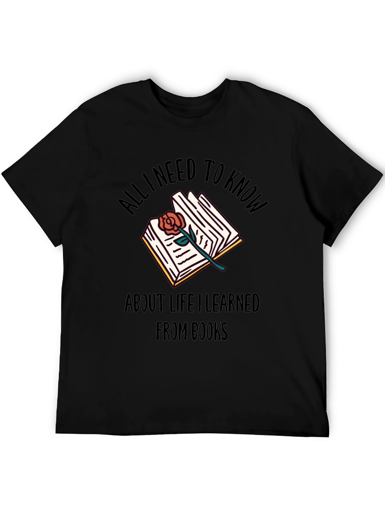 Show off your love for reading with this stylish black t-shirt. Featuring a unique design with stacked book illustration and a rose. This tee is crafted from a soft and breathable fabric, ensuring all-day comfort. The bold graphic print is eye-catching and makes a statement, ideal for casual wear, book club meetings, or everyday wear. It's also a perfect gift for students, teachers, and anyone who appreciates literature.