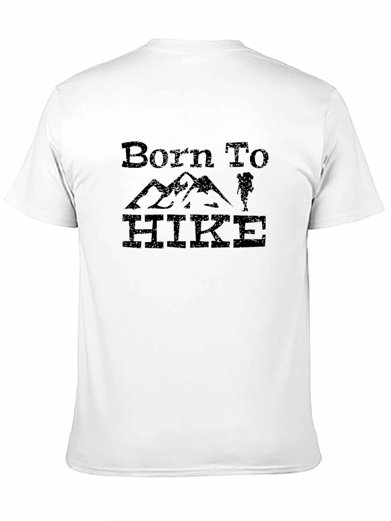 Embrace your love for the outdoors with this black graphic tee. The shirt features the phrase "Born to Hike", displayed above a stylized mountain range. Perfect for nature lovers and outdoor enthusiasts. This shirt is a comfortable and stylish way to show off your passion for hiking. Pair it with your favorite jeans or hiking pants for a casual yet adventurous look.