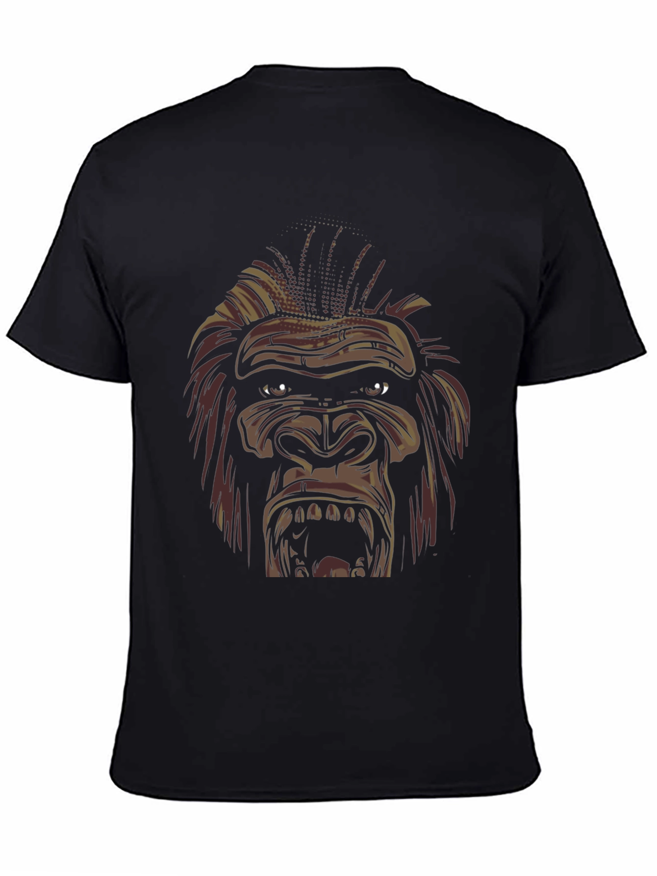 Show your wild side with this bold black t-shirt featuring a striking gorilla graphic. The detailed design showcases a menacing gorilla face, complete with intense eyes and bared teeth. Made from a comfortable-looking fabric, this tee is perfect for casual wear, concerts, or expressing your unique style. The black backdrop makes the graphic pop, ensuring you'll stand out from the crowd. Wear it with jeans, shorts, or dress it up with a jacket. Great for animal lovers and anyone with a bold personality!