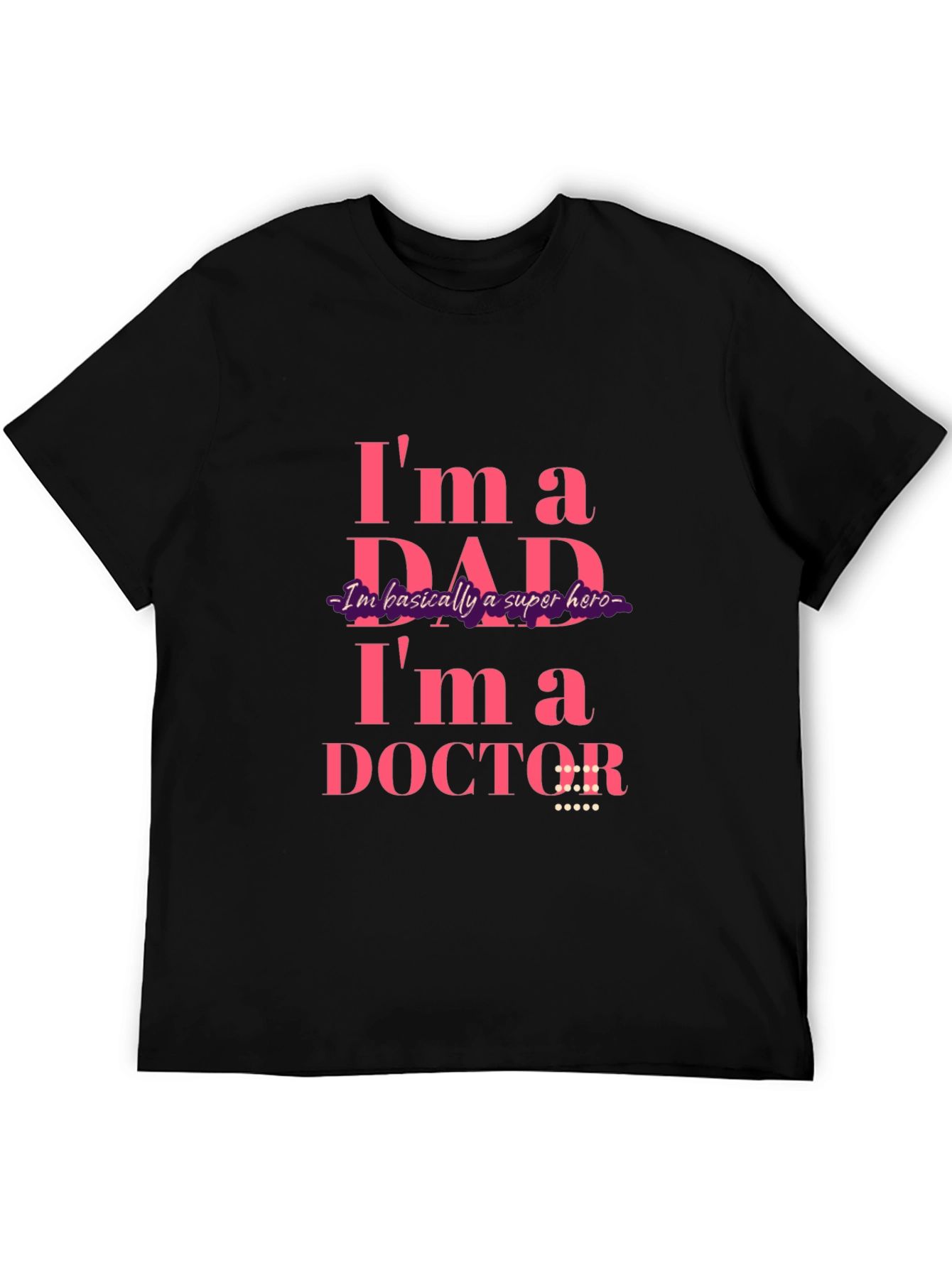 Show off your dual role with this stylish black t-shirt! Featuring a bold, eye-catching pink graphic that reads "I'm a DAD - I'm basically a super hero - I'm a DOCTOR", this tee is perfect for any super dad who's also a medical professional. The soft, breathable fabric ensures all-day comfort, whether you're saving lives or playing with your kids. Wear it with pride at the hospital, family gatherings, or just around town. A great gift for Father's Day, birthdays, or any occasion!