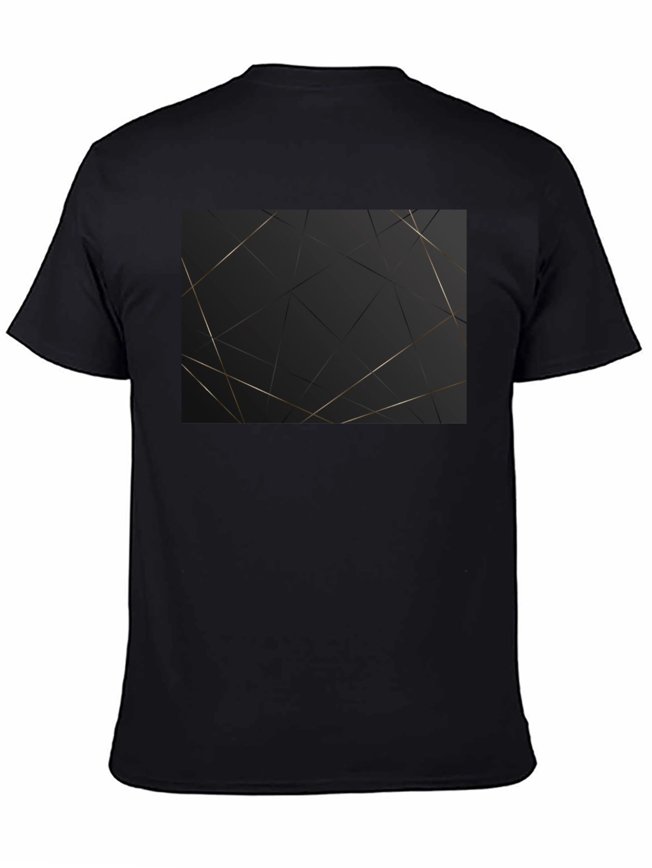 Showcase your modern style with this eye-catching black t-shirt. Featuring a striking geometric pattern of gold lines against a sleek black background, this tee offers a contemporary twist on a classic design. Crafted from soft, breathable fabric, it ensures all-day comfort and a perfect fit. The bold graphic print adds a touch of sophistication, making it ideal for casual outings, parties, or simply expressing your unique personality. Elevate your wardrobe with this versatile and stylish t-shirt that effortlessly blends comfort and fashion.