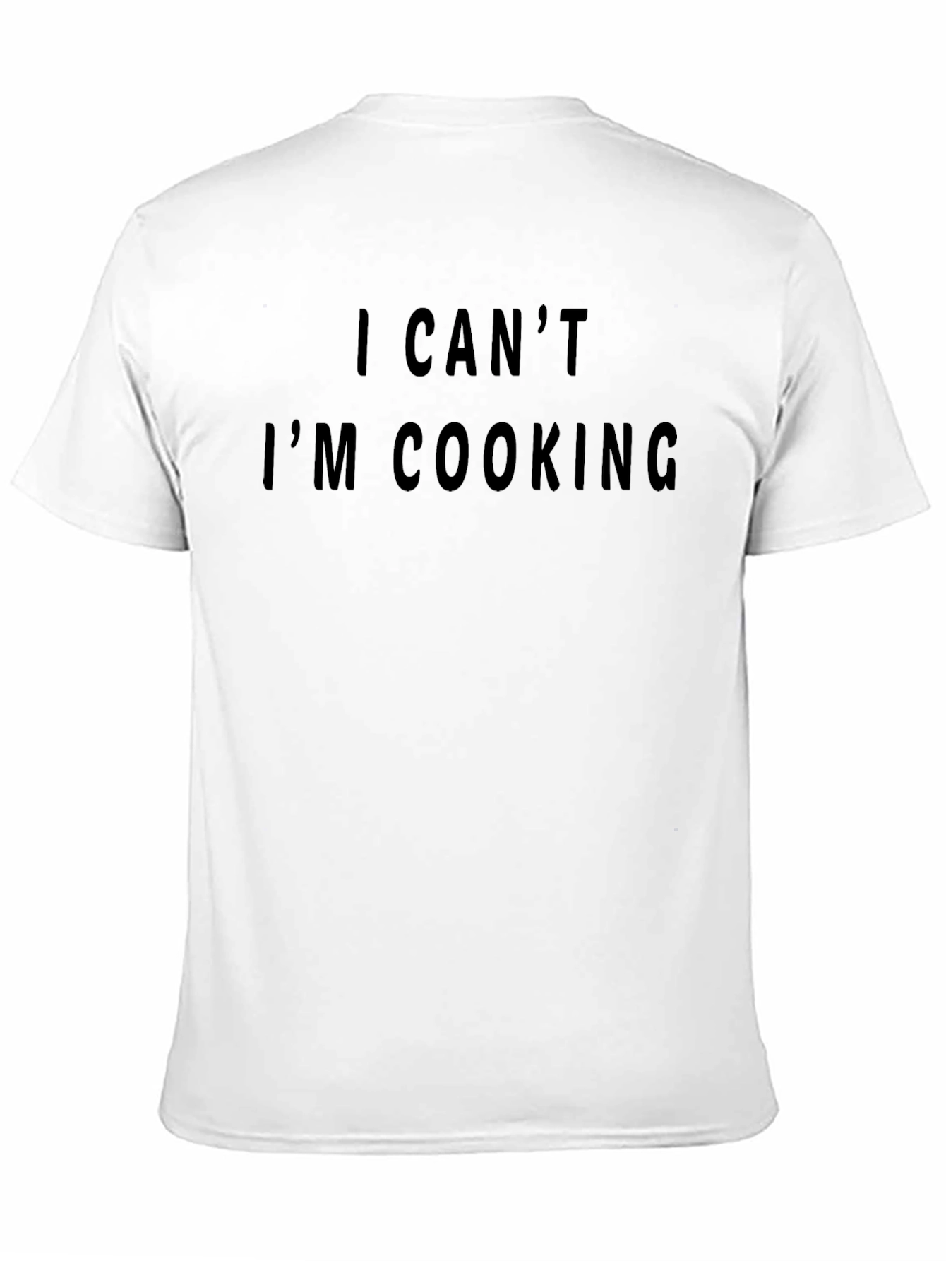 Show off your passion for cooking with this hilarious black t-shirt. Featuring the witty slogan "I Can't I'm Cooking" in bold black lettering, this tee is perfect for chefs, home cooks, and anyone who loves spending time in the kitchen. The shirt appears to be made from a comfortable, soft fabric, ensuring a great fit and feel. Wear it while you're whipping up your favorite dishes, at a BBQ, or just lounging around the house. It's a great conversation starter and a fun way to express your love for all things culinary. Also makes a great gift for the cooking enthusiast in your life!