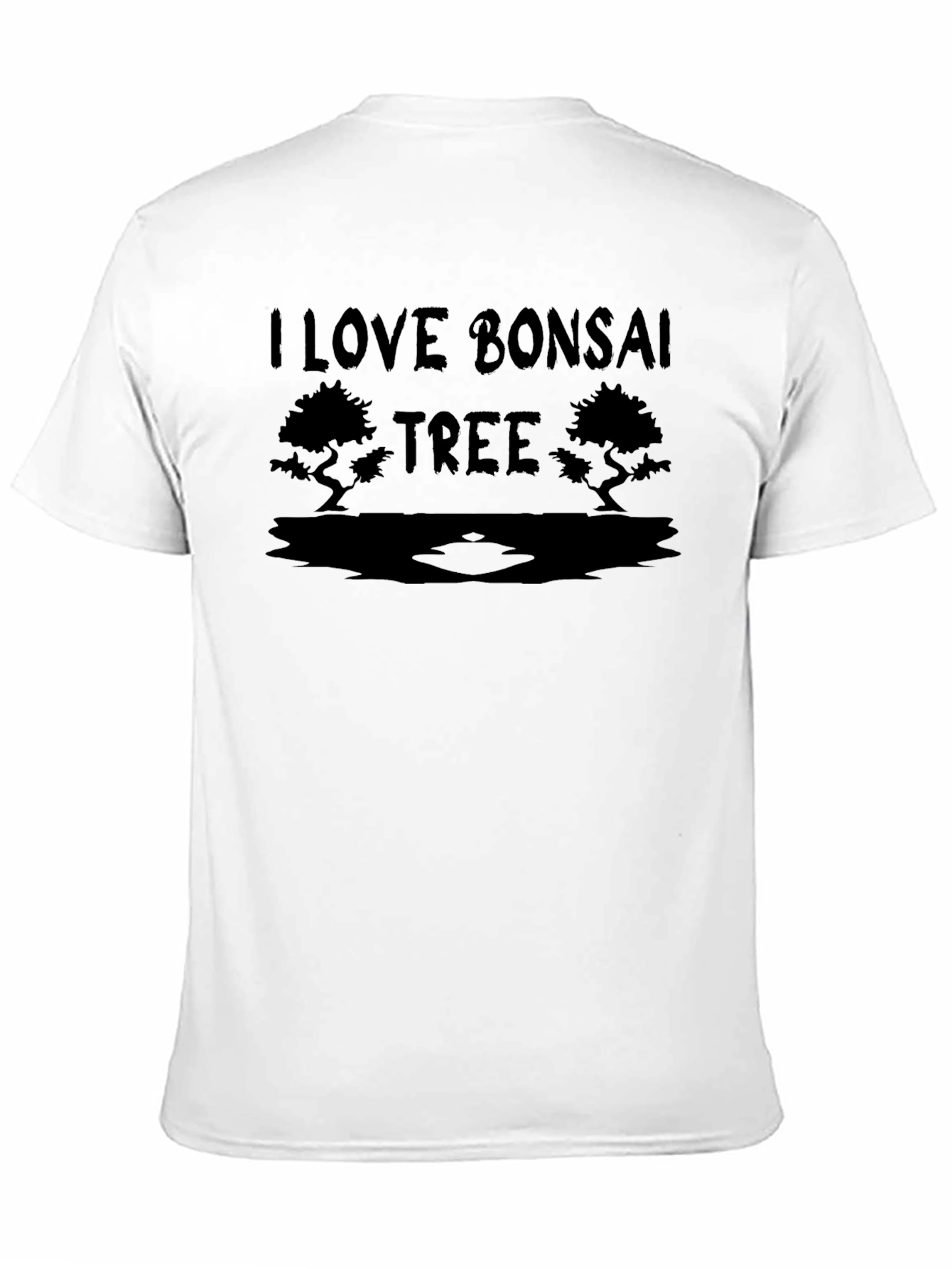 Show your appreciation for the art of bonsai with this eye-catching t-shirt. This black t-shirt features bold lettering that reads "I LOVE BONSAI TREE," artistically incorporating silhouetted bonsai trees and a reflective pool. The design is printed prominently on the front of the shirt, making it a great conversation starter for bonsai enthusiasts. Made from a comfortable material, this t-shirt is perfect for casual wear, gardening activities, or as a thoughtful gift for the bonsai lover in your life. Its classic design ensures it will be a staple in any wardrobe.