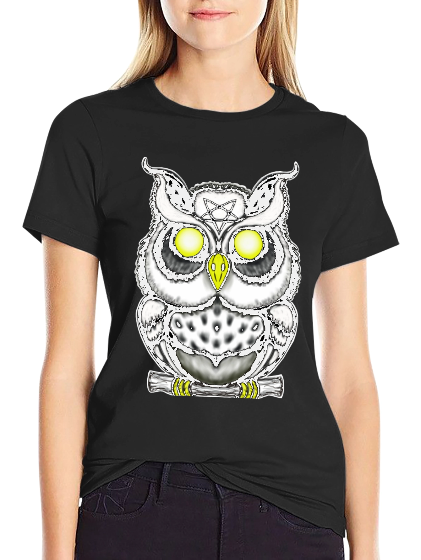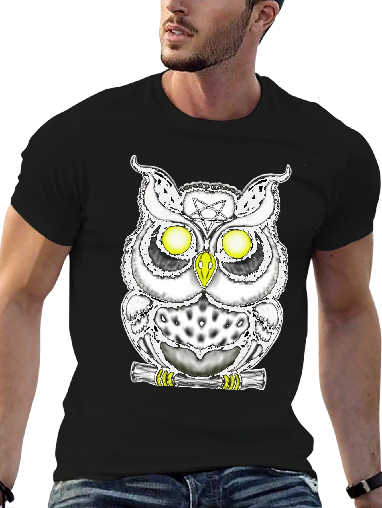 Embrace the enigmatic with this unique graphic tee! Featuring a captivating owl design, this shirt is perfect for those who appreciate gothic aesthetics. The detailed owl artwork showcases vibrant yellow eyes and intriguing patterns. The black tee creates a striking backdrop for the owl, making it a standout piece. Comfortable and stylish, this t-shirt is ideal for casual wear, concerts, or expressing your individuality. Add a touch of mystery to your wardrobe with this eye-catching tee.