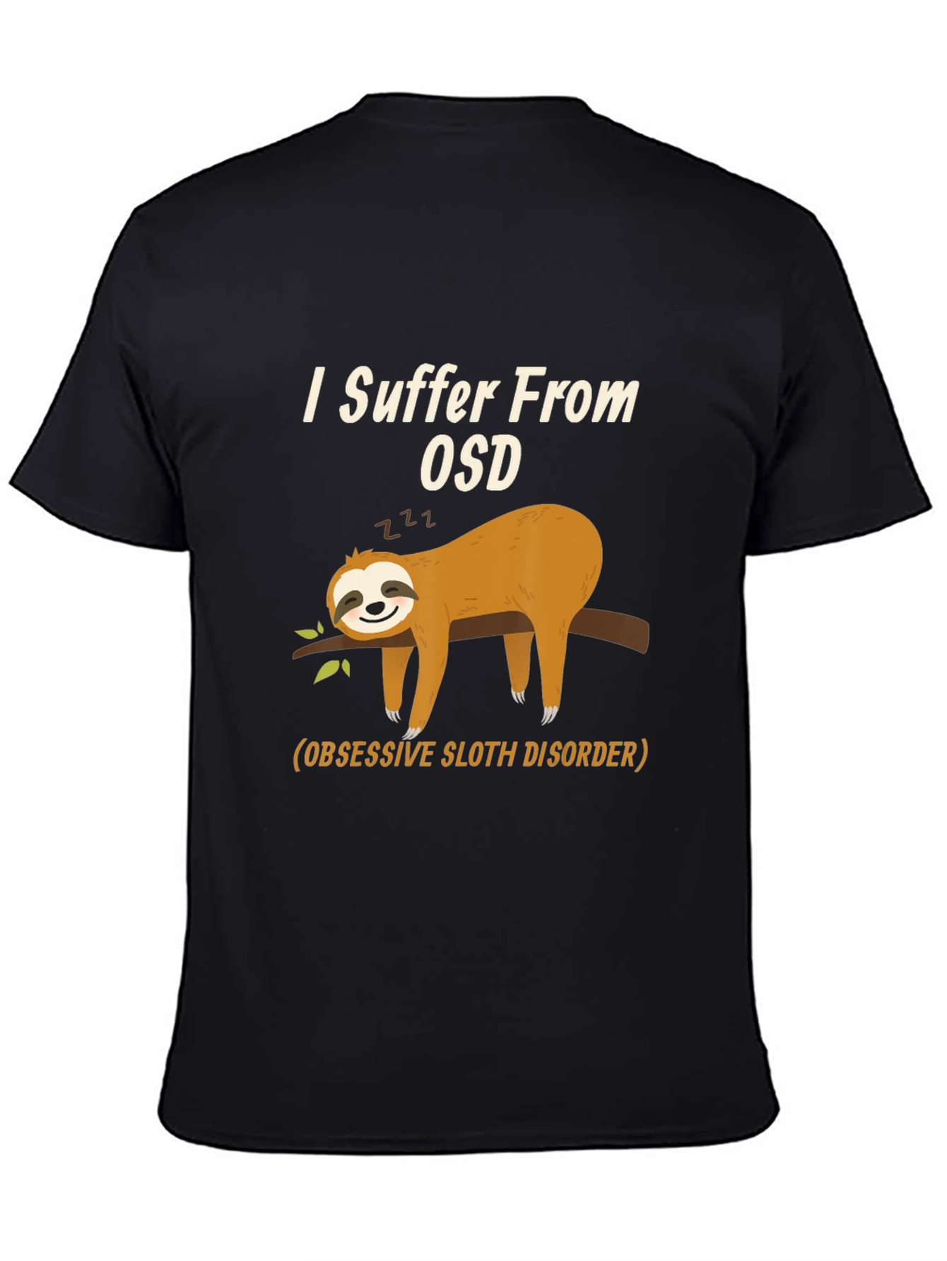 Show off your love for sloths with this unique t-shirt! This black tee features a cute sloth graphic lounging on a branch, accompanied by the phrase "I Suffer From OSD (Obsessive Sloth Disorder)." Made from comfortable, breathable fabric, this t-shirt is perfect for casual wear. It's a great conversation starter and a fun way to express your relaxed personality. Ideal for sloth enthusiasts, animal lovers, or anyone who appreciates a good laugh. Grab this funny tee and let everyone know you're proud to have OSD!