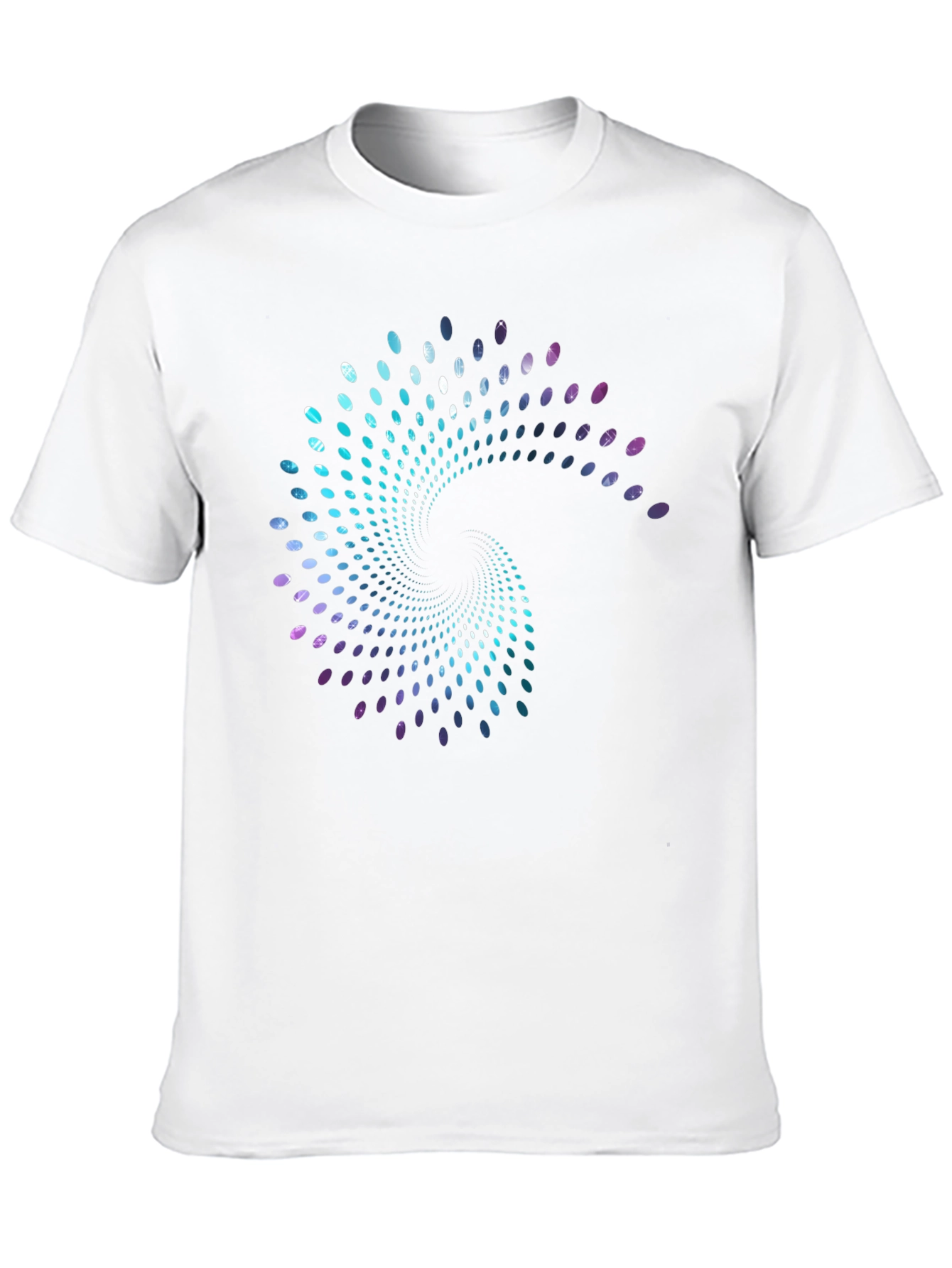Show off your unique style with this eye-catching black t-shirt. Featuring a mesmerizing spiral galaxy graphic print on the front, this tee is sure to turn heads. The design incorporates a swirling pattern of colorful dots, creating a stunning visual effect. Made from a comfortable and breathable fabric, this shirt is perfect for everyday wear. Pair it with jeans or shorts for a casual yet stylish look. Whether you're hanging out with friends or exploring the city, this t-shirt is a must-have addition to your wardrobe.