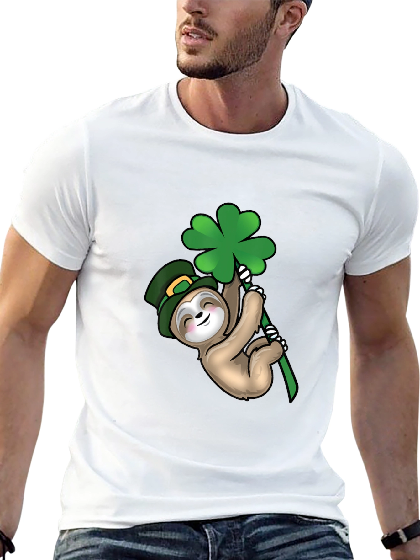 Show off your St. Patrick's Day spirit with this unique black T-shirt! The design features an adorable sloth wearing a green leprechaun hat and holding onto a large, lucky four-leaf clover. Made from comfortable materials, this tee is perfect for celebrating St. Paddy's Day in style or for adding a touch of whimsy to your everyday wardrobe. Great for casual wear or as a fun gift for sloth and St. Patrick's Day lovers alike. Get yours today and spread the luck!