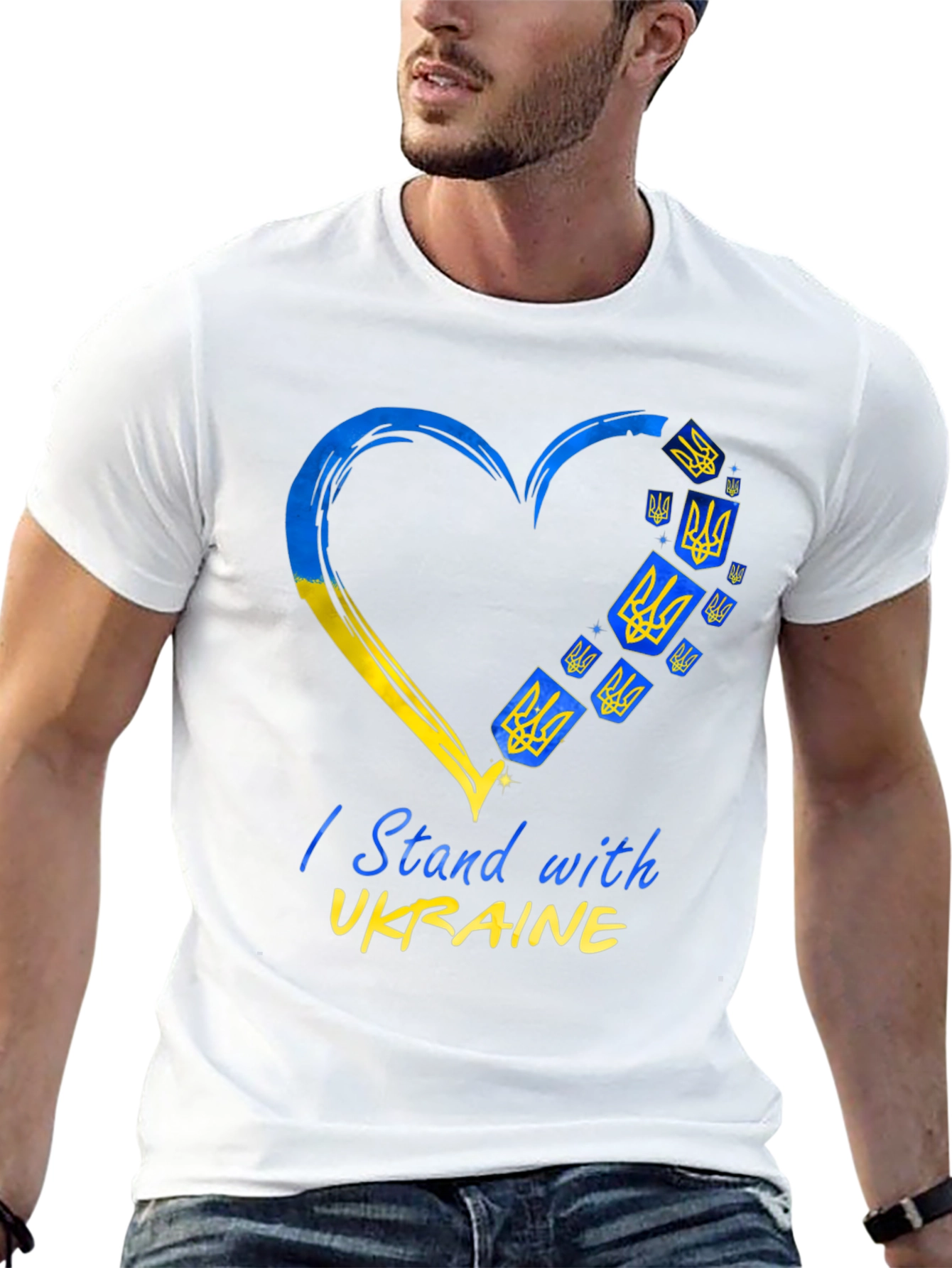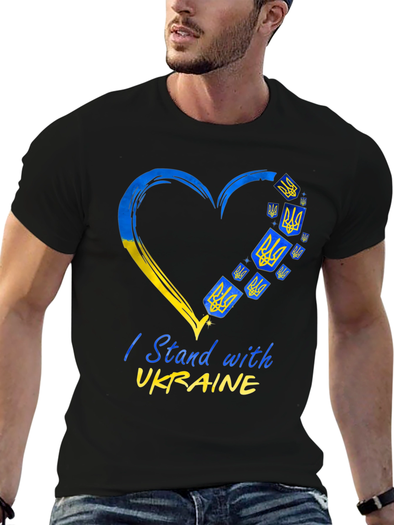 Show your support with this striking black t-shirt. Featuring a heart design in the colors of the Ukrainian flag, along with the nation's coat of arms and the powerful message "I Stand with Ukraine." Made from comfortable fabric, this tee is perfect for rallies, everyday wear, or as a meaningful gift. Express your solidarity in style and make a statement for peace and unity. Ideal for anyone who wants to show their support during this challenging time.