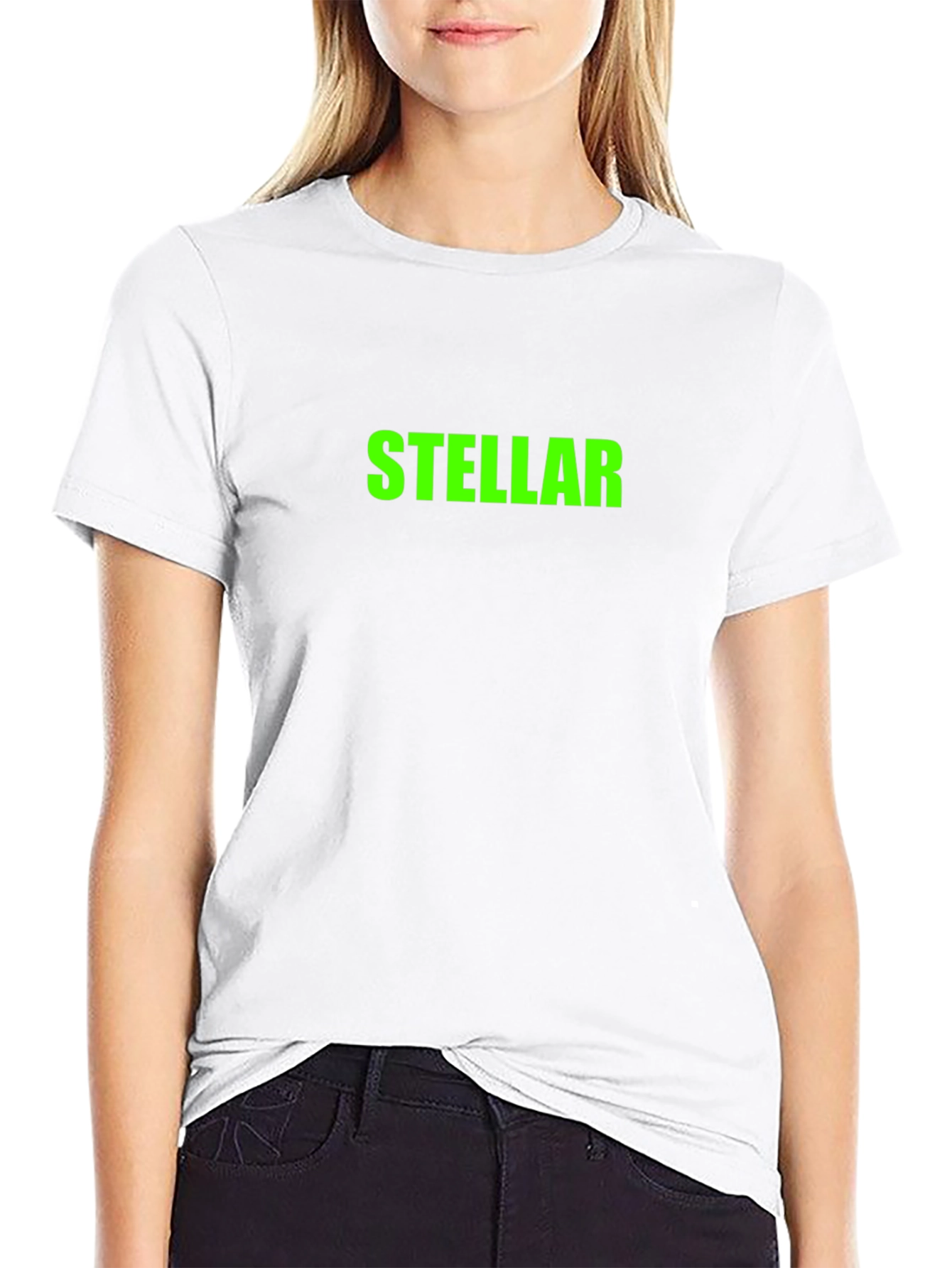 Elevate your casual style with this eye-catching Stellar Graphic Tee. Crafted from soft, breathable black cotton, this classic-fit t-shirt delivers all-day comfort and effortless style. The vibrant green "STELLAR" graphic boldly displayed across the chest makes a confident statement. Whether you're hitting the streets, lounging at home, or hanging out with friends, this versatile tee adds a touch of urban flair to any look. Pair it with jeans, shorts, or joggers for a cool and comfortable ensemble. Make a statement with this comfortable tee. This tee is designed for everyday wear.