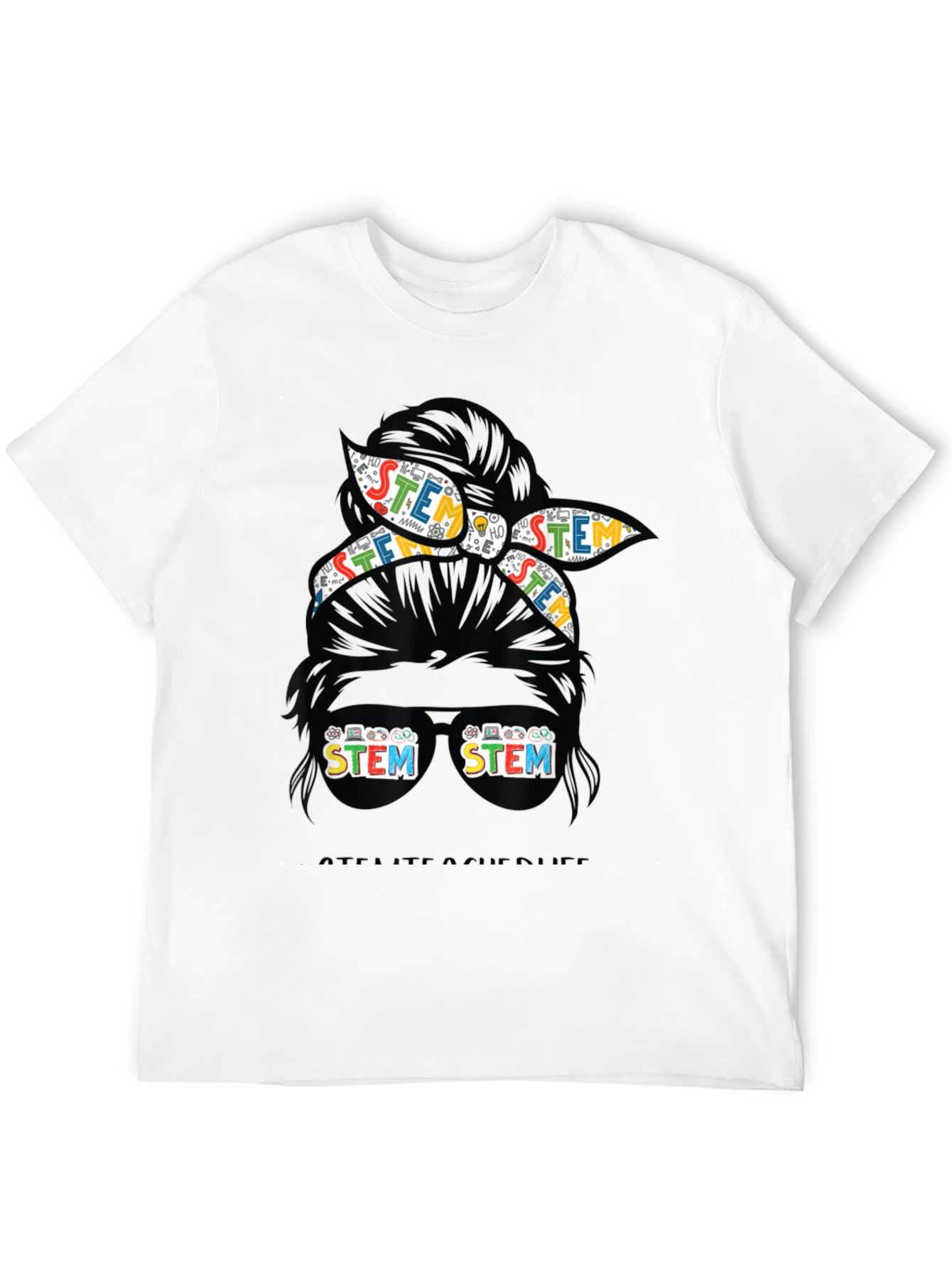 Show off your love for STEM with this unique graphic t-shirt. Featuring a stylish messy bun design adorned with colorful STEM elements, this tee is perfect for science, technology, engineering, and math educators. The design incorporates vibrant colors and playful imagery related to STEM fields. Made from comfortable, breathable fabric, this shirt is ideal for everyday wear in the classroom or casual outings. Celebrate your passion for education with this eye-catching STEM teacher tee. A great gift for yourself or the STEM teachers in your life!