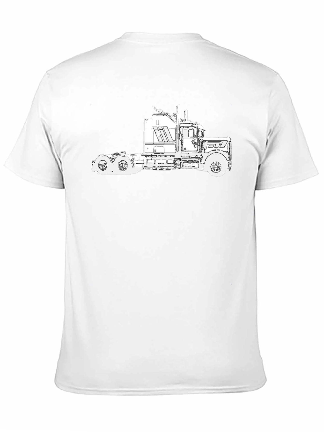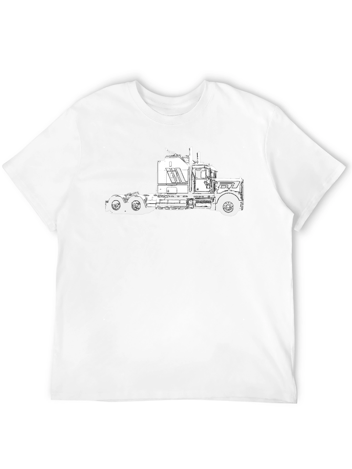 This classic black tee features a unique white graphic design of a semi-truck. The design is bold and eye-catching, making it a great conversation starter. This shirt is perfect for truck enthusiasts, drivers, or anyone who loves unique apparel. Wear it casually with jeans or dress it up with a jacket. Made from soft, breathable fabric, this tee is comfortable enough for all-day wear. Show off your love for trucking with this cool and stylish shirt!