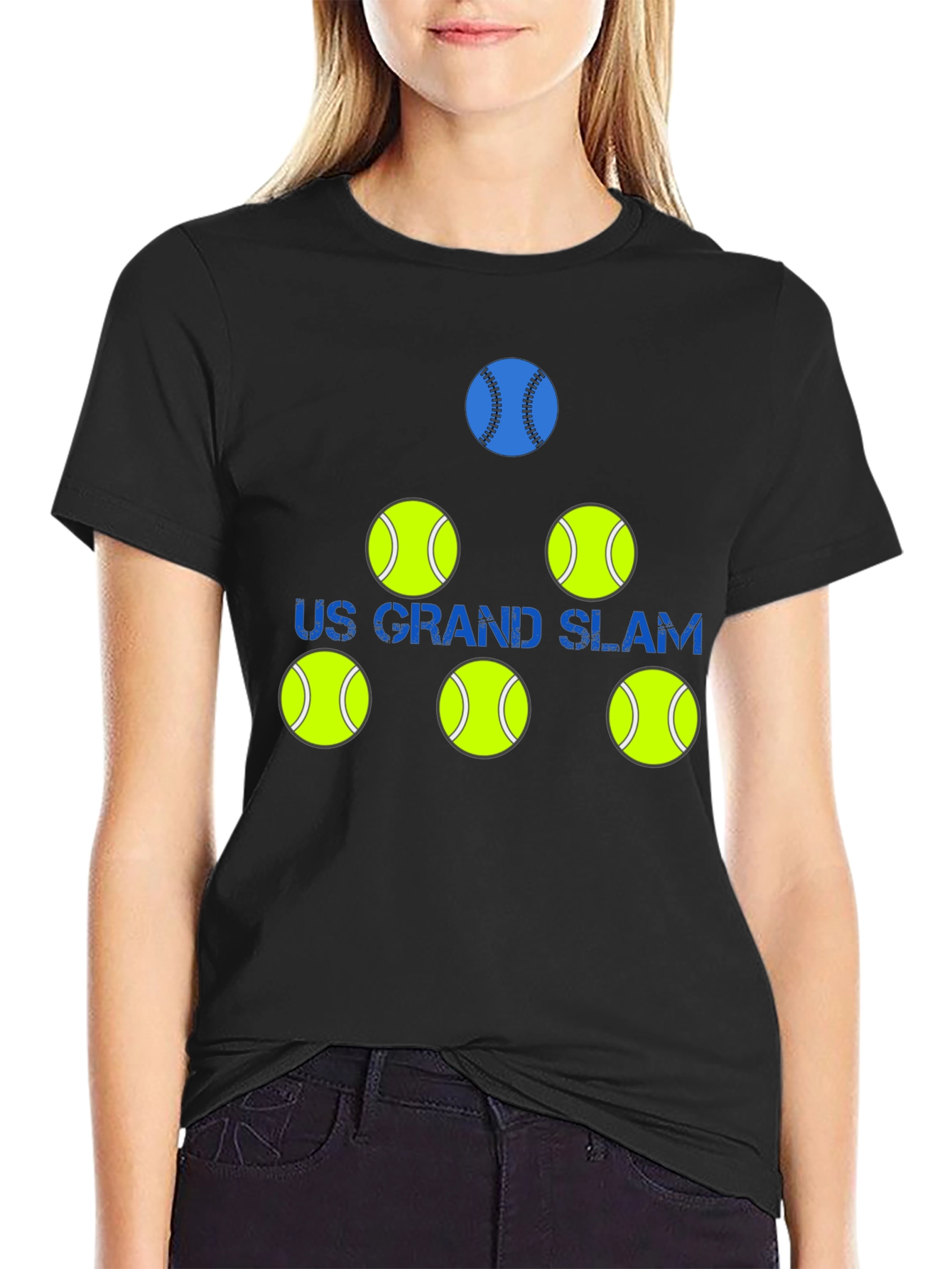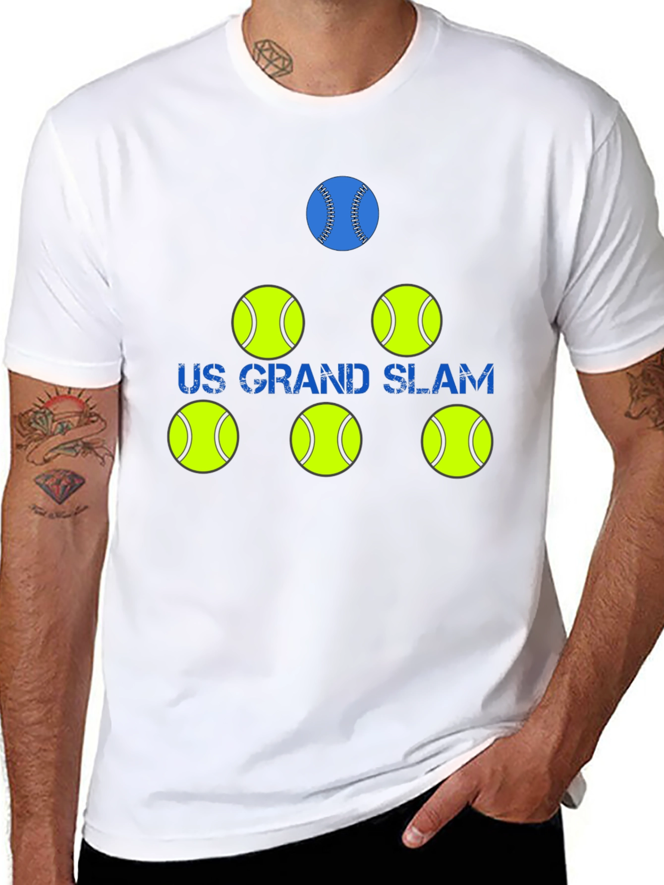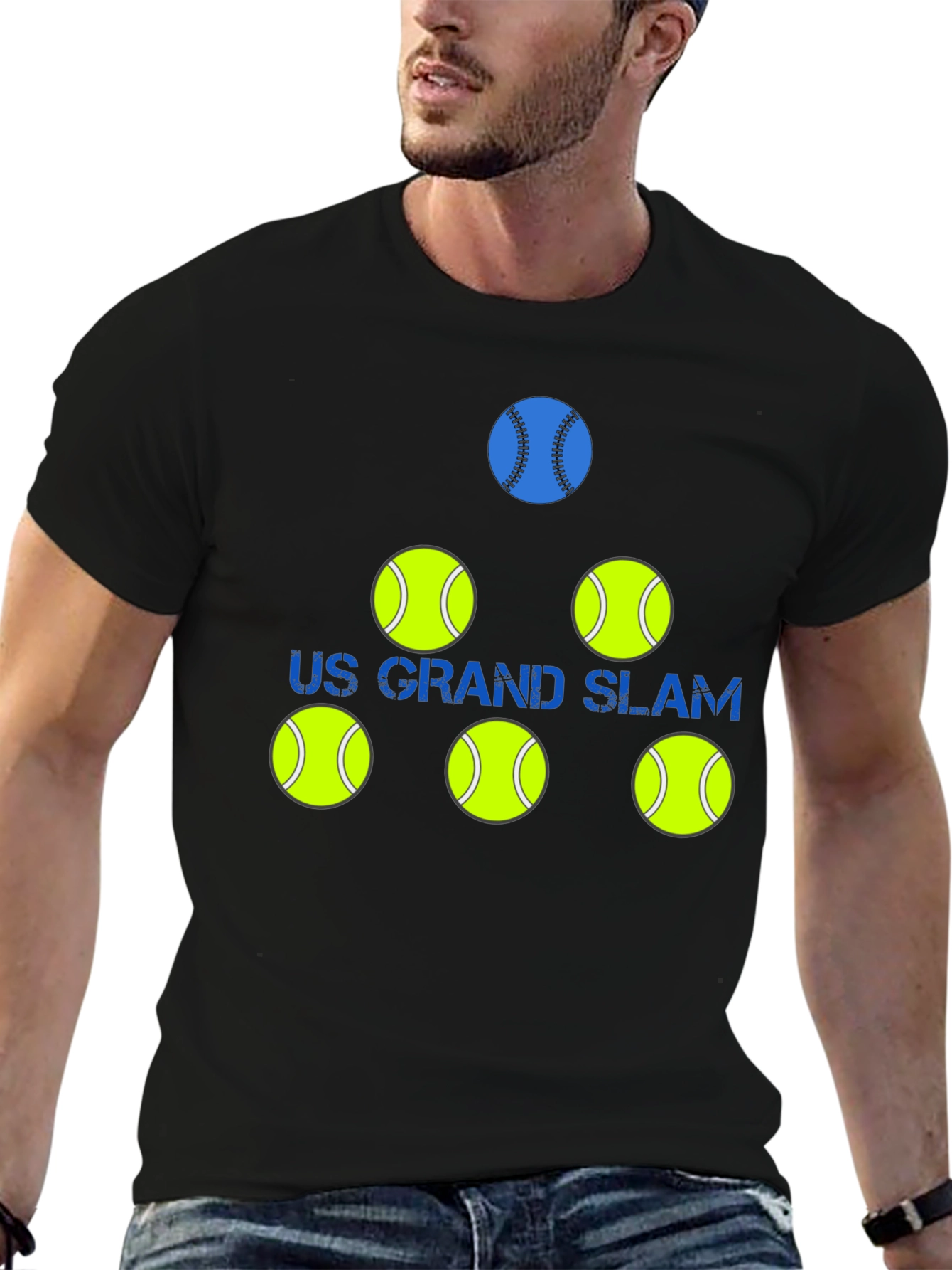 Show off your love for tennis with this unique graphic t-shirt. Featuring a striking design with tennis ball icons and the words "US Grand Slam", this shirt is perfect for tennis enthusiasts and players. The shirt has a classic fit. Whether you're heading to the court, watching a match, or just hanging out with friends, this t-shirt is a stylish way to express your passion for the game. Makes a great gift for birthdays, holidays, or any special occasion. Grab yours now and let everyone know you're a true tennis fan!