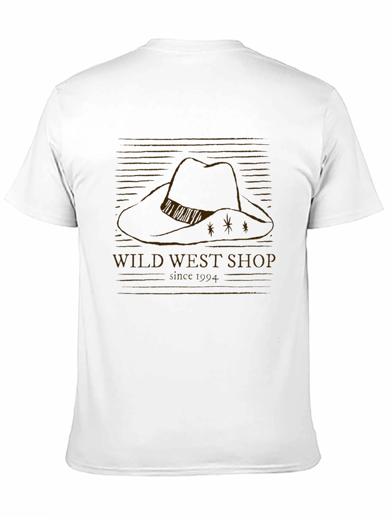 Showcase your love for the wild west with this classic black t-shirt. The tee features a stylized brown cowboy hat graphic design, emblazoned with 'Wild West Shop' and 'Since 1994', evoking a sense of heritage and authenticity. The minimalist design and soft fabric offer both comfort and style, making it a versatile piece for casual wear. Perfect for everyday adventures, rodeos, or simply expressing your western spirit, this t-shirt is a must-have for enthusiasts of the genre. Pair it with jeans or shorts for a relaxed yet distinctive look.